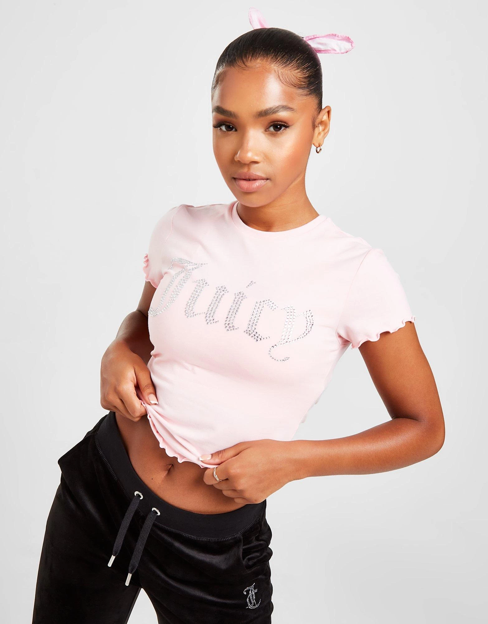 Level up your look with this women’s Diamante Slim T-Shirt from Juicy Couture. Landing in a Pink colourway, this slim fit tee is made using a super-soft cotton fabric to keep you comfy throughout the day. It features a crew neckline with short sleeves for a classic cut and has a cropped hem for an off-duty vibe. Signed off with Juicy Couture branding to the chest. Machine washable. | Our model is 5’7″ and wears a size small.
