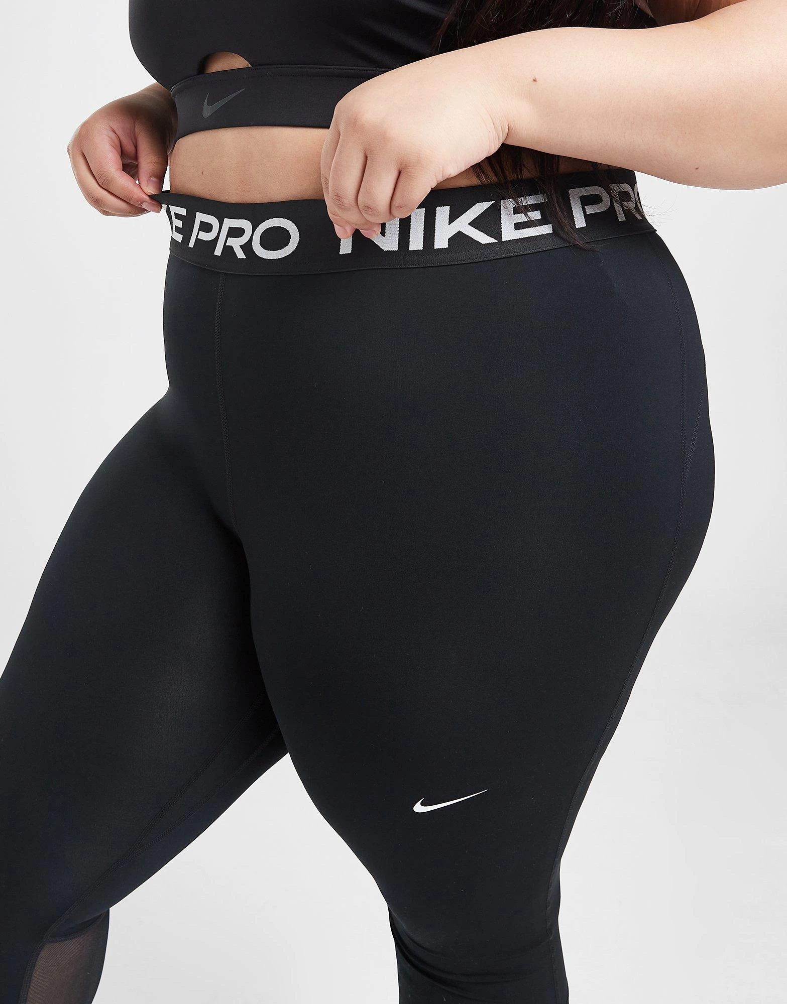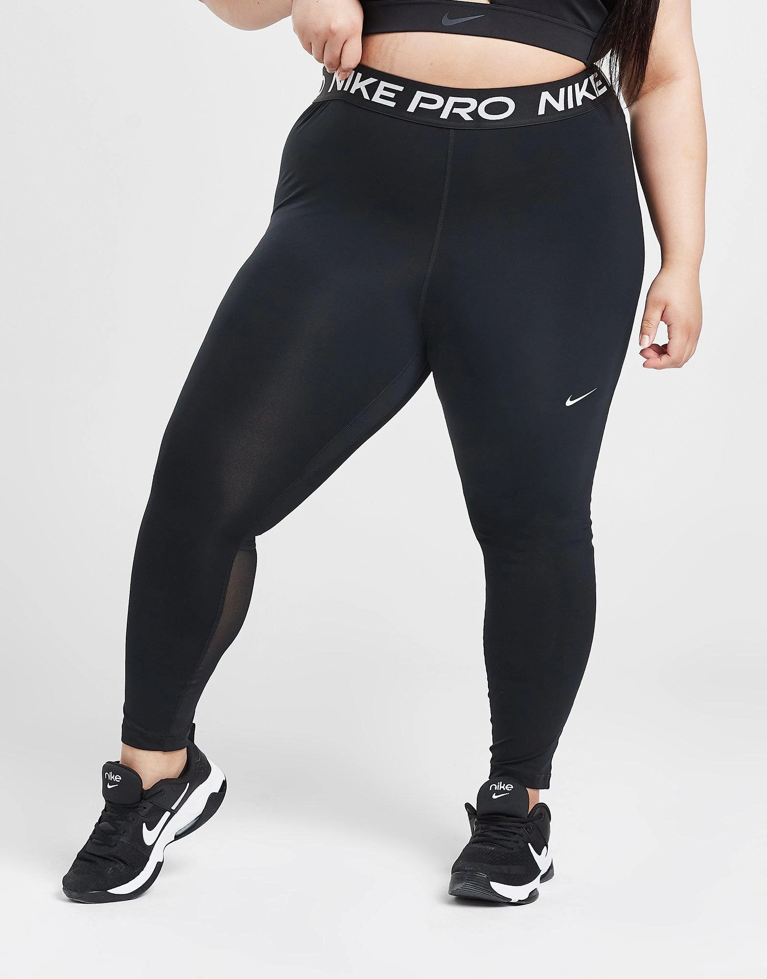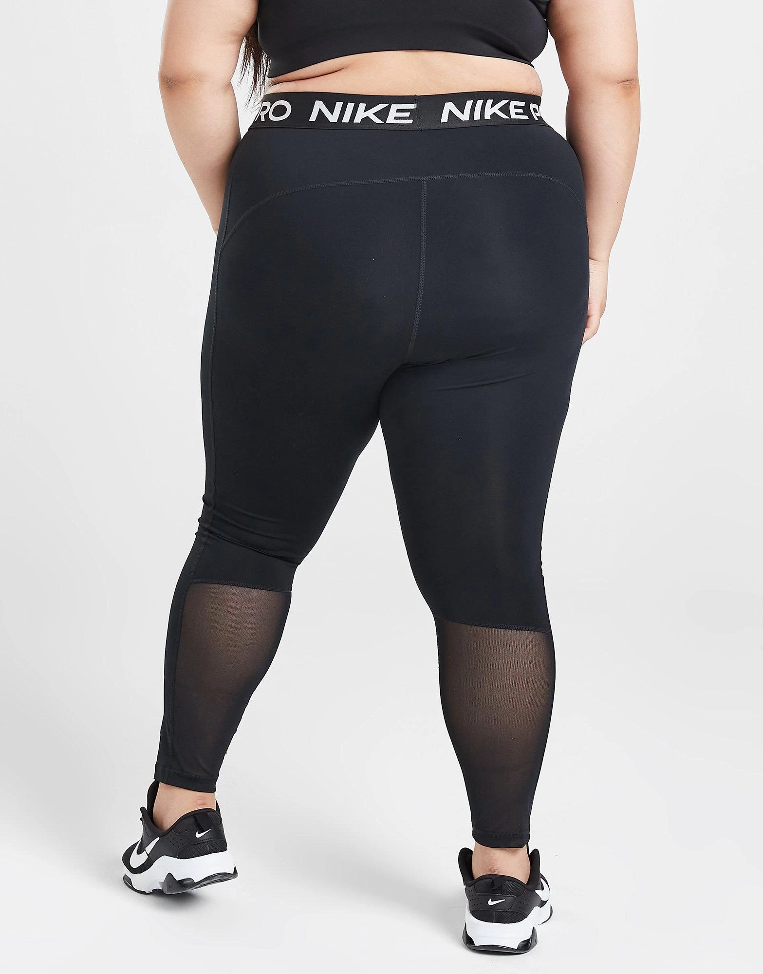 Power through a workout in these women’s Training Pro Plus Size Tights from Nike. In a Black colourway, these tight-fit fitness leggings are made from smooth and stretchy poly fabric with mesh panels to the lower leg. They use Dri-FIT tech to wick away sweat, and feature full length legs and a high-rise, elasticated waistband. With Nike Pro branding to the waist, these tights are finished with a Swoosh logo to the thigh. Machine washable.