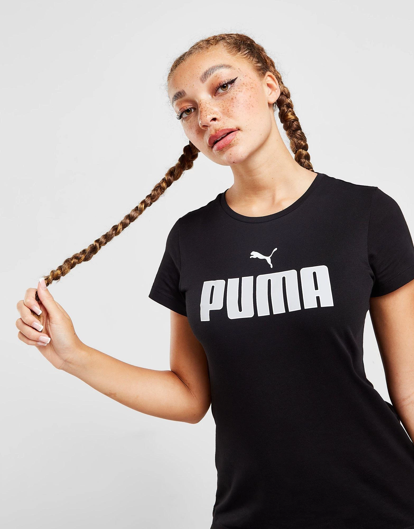 Level up your everyday staples with this women’s Core Outline Logo T-Shirt from PUMA. Exclusive, this regular-fit tee is made with soft, lightweight cotton for essential comfort. It features a ribbed crew neckline and short sleeves for a classic look, and is finished up with bold PUMA branding acrosst the chest. Machine washable. | Our model is 5’7.5″ and wears a size small.